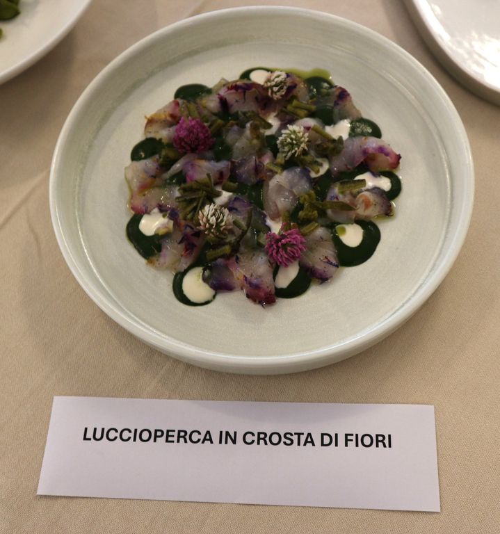 1) antipasto: Ristorante Masa Chalet con Luccioperca in crosta di Fiori, che si aggiudica anche il premio come migliore abbinamento piatto-vino con il Moscato di Scanzo della Cantina Pietramatta