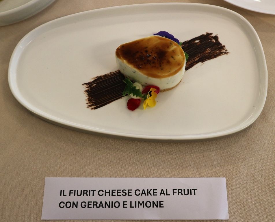 4) dessert: Ristorante Gruppo Aglio e Oglio con Il Fiurit – Cheese Cake al Fiurit con Geranio e limone