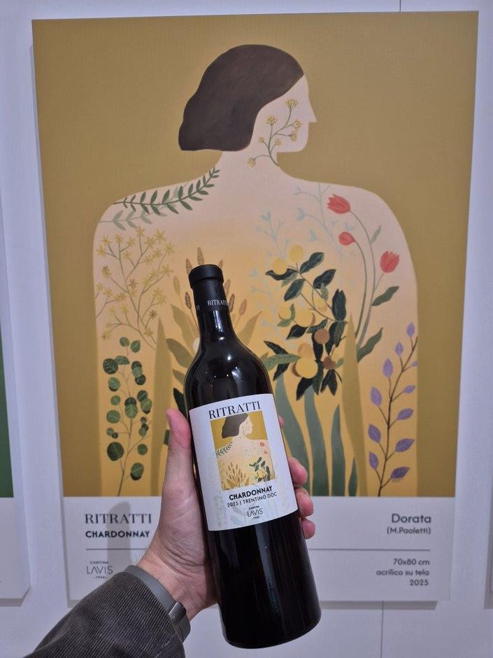 A interpretare visivamente questa rinascita estetica e concettuale, La-Vis ha scelto di rinnovare il legame con l’arte in collaborazione con il Mart di Rovereto, la Galleria Civica di Trento e l’Archivio Trentino Artisti Contemporanei (ADAC). Dopo una selezione accurata tra oltre 600 candidati, è stata individuata Margherita Paoletti, la venticinquenne artista contemporanea, capace di cogliere e restituire il senso profondo del progetto. I suoi sei dipinti originali, realizzati dopo un’esperienza immersiva nei vigneti, raccontano una natura che vive dentro l’essere umano, attraverso silhouette femminili che custodiscono fiori, foglie e vita. Un vero ecosistema che funziona, dove arte e vino diventano linguaggi paralleli capaci di emozionare.