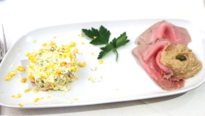 Il menu degustazione (35 euro, bevande escluse) inizia con un aperitivo di gonfiotti alla tuma di Paroldo e salumi locali, seguito da quattro antipasti ben eseguiti: vitello tonnato all’antica maniera, giardiniera casalinga, sfoglia di zucca, tuma e amaretti con bagna cauda,
