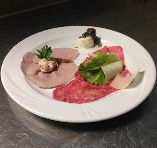 </figure>Tra gli antipasti spiccano i classici della tradizione piemontese: vitello tonnato, acciughe al verde, carpaccio all’albese, tagliere di salumi (5–7 €).