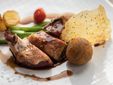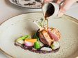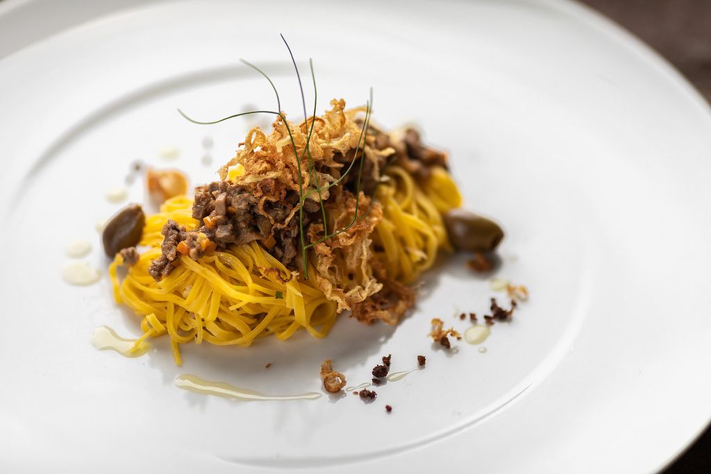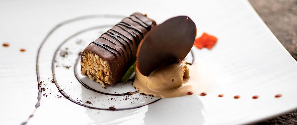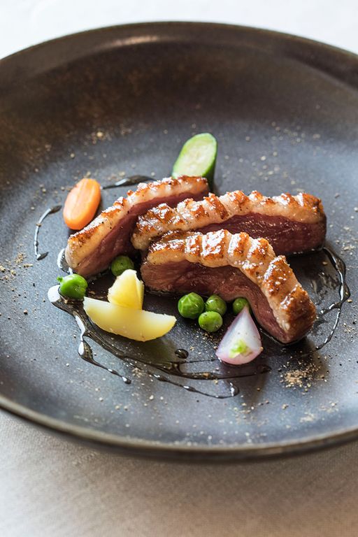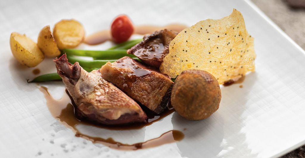 Un menù che guarda alla Francia, patria d’origine dello chef, rielaborando grandi classici con sensibilità moderna. L’antipasto propone il foie gras d’anatra al torcione e Cromesqui di Baccalà al bagnet verd. Si prosegue con Risotto Carnaroli ai pomodori Pachino, Scamone di Fassona, Albicocche del Roero su crumble di Nocciola e gelato al Basilico.