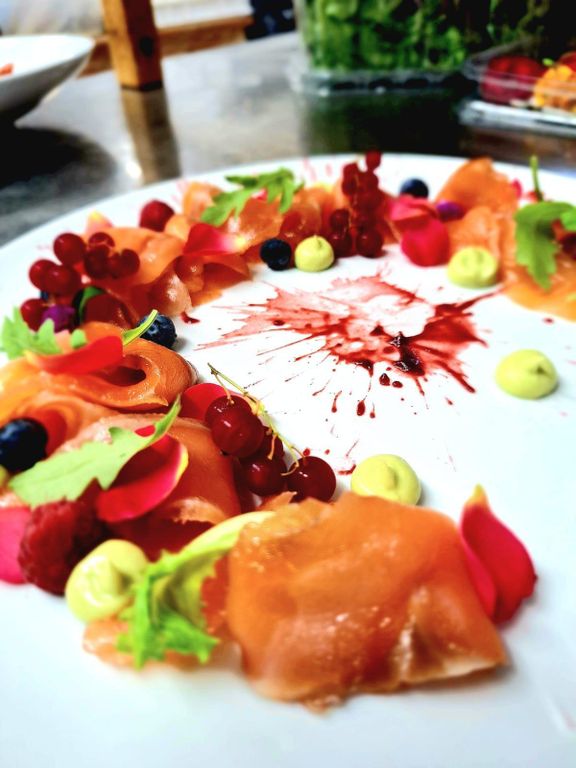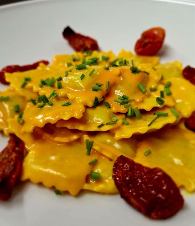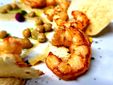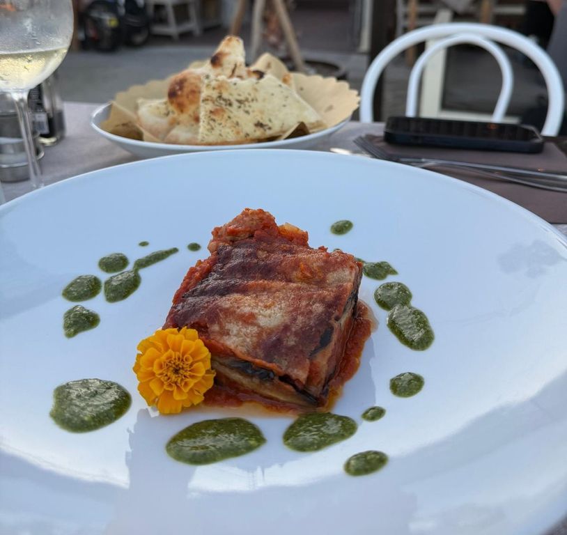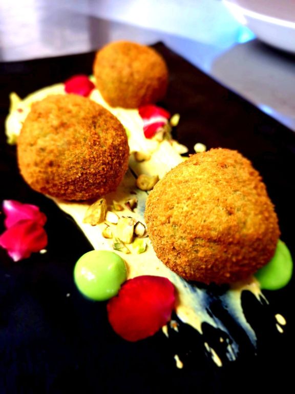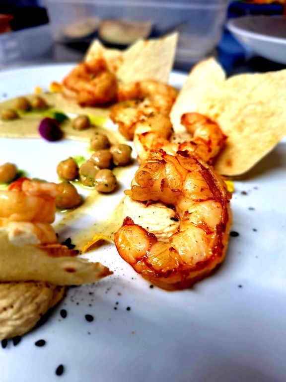 Il pesce la fa naturalmente da protagonista nel menu, sin dagli antipasti con le tipiche Alici ripiene e fritte con panissa e misticanza, ma anche con varianti più originali quali le Code di gambero alla soia con purea di ceci e sesamo nero e, per i vegetariani, esotiche Falafel di piselli e pistacchi con salsa di yogurt al curry.