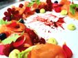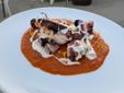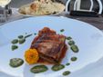 Il tonno fresco, accompagnato da pomodorini ed erba cipollina, insaporisce i paccheri in un primo fresco e delizioso. Per i tradizionalisti, in menu non mancano Tagliolini allo scoglio e Trofie al pesto. Sempre il Tonno, questa volta scottato, con salsa di zucchine e coulis di pomodoro allo zafferano, è protagonista di un saporito secondo piatto, mentre l’Ombrina viene servita con pomodori cuore di bue e pesto.