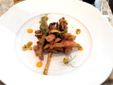 Si comincia con una serie di piccole portate d’impronta contadina: patate, porri, aringa e focaccia, seguite da baccalà con melanzane sott’olio e salsa di peperoni arrosto, una cipolla cotta nel sale con funghi e santoreggia, e patate con toma del Colle Termini su salsa aiolì.