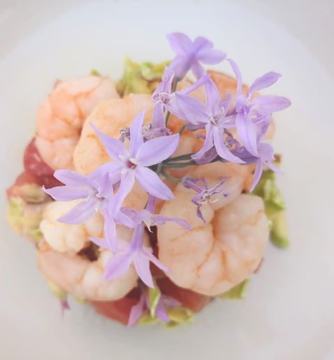Cucinare con i fiori: Gamberi con zucchine trombetta e Tulbaghia