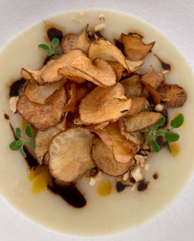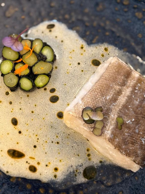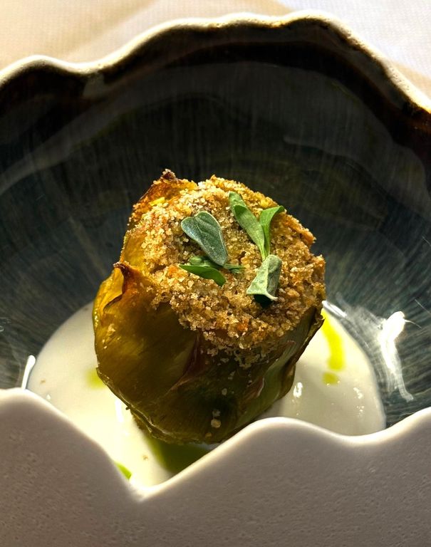 Tra i secondi, spiccano le “leitùghe pinn-e in broddu”, le classiche lattughe ripiene di pesce del Ponente ligure, qui reinterpretate con gallinella e cotte nel loro delicato fumetto (21 euro), e il pescato del giorno, accompagnato da carciofi d’Albenga, mandorla e limone salato (28 euro), sintesi perfetta di mare e terra.