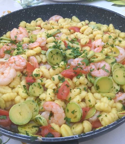 Cucina con i fiori: Gnocchetti con gamberi, zucchine trombetta e nasturzio