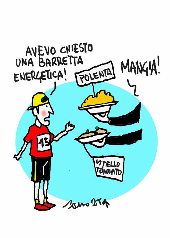 Dimenticate quindi le barrette energetiche e le bevande isotoniche. Qui si va di polenta concia a colazione, vitello tonnato nei rifornimenti volanti e, per il dopo corsa, un bel piattone di tajarin ai 40 tuorli con sopra più burro che chilometri percorsi.
