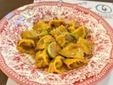 Tra i primi piatti, tutti di pasta fresca fatta in casa, si distinguono i ravioli al tocco, classico ragù alla ligure, i tortelli di cervo alle cinque spezie e i pansotti ai carciofi, con prezzi dai 12 ai 17 euro.