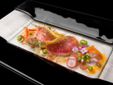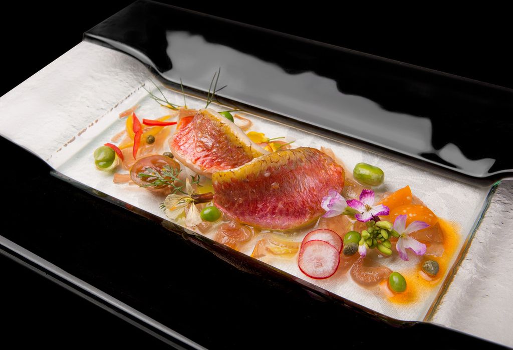 Nel menù alla carta trovano spazio piatti di grande personalità come la zuppa di pesce passata della tradizione del Ponente Ligure, servita con filetti di pesce di scoglio, crostini e aioli, o i gamberi di Sanremo fiammeggiati all’Islay Whisky, accompagnati da riso con paella di verdure. Imperdibili le proposte di pesce crudo, che riflettono la maestria dello chef nella valorizzazione della materia prima.