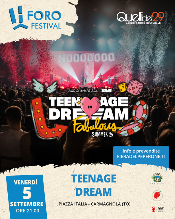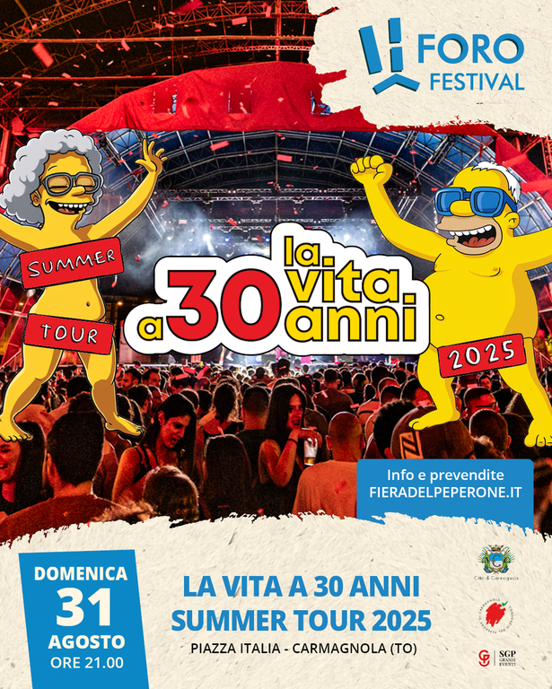 Alla domanda - “chi ha detto che la vita adulta è solo doveri?” - il Foro Festival risponde con "La Vita a 30 anni", una serata dedicata a rivivere la spensieratezza adolescenziale attraverso le hit che hanno fatto da colonna sonora alla giovinezza. Sabato 31 agosto, questo evento musicale sarà più di un semplice concerto, bensì un invito a ballare e cantare a squarciagola le canzoni più belle di sempre degli anni '90 e 2000, ricordando che la spensieratezza non ha età.