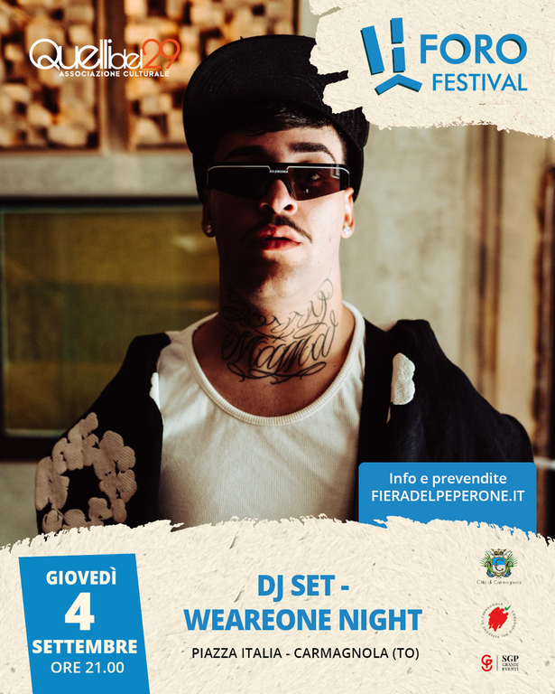 Non solo degustazioni, premi e primizie, ma anche musica e spettacolo, accenderanno la città di Carmagnola in occasione della Fiera Internazionale del Peperone, un evento che ogni anno attira migliaia di visitatori e celebra le eccellenze del territorio. Il Foro Festival, fiore all'occhiello degli eventi serali, sarà ancora una volta ospitato nel Foro Boario di Piazza Italia, area fieristica storica e punto di riferimento per la comunità fin dagli anni settanta. Per l’edizione 2025 il Foro Festival promette anche un cartellone ricco di appuntamenti imperdibili. Tra gli highlight già confermati, il pubblico potrà assistere a serate che spaziano dalla musica alla riflessione culturale, offrendo intrattenimento per ogni gusto.