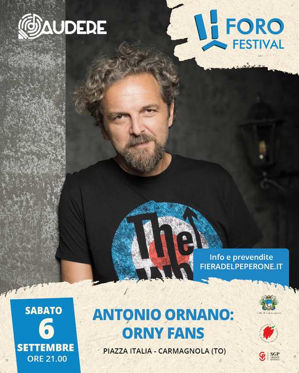 Sabato 6 settembre si esibirà Antonio Ornano, uno dei comici più brillanti e apprezzati della scena italiana. Dopo aver conquistato il pubblico televisivo con le sue esilaranti apparizioni a Zelig e altri programmi di punta, porterà sul palco del Foro Festival la sua comicità tagliente, fatta di osservazioni spietate, personaggi surreali e un’ironia che non fa sconti a nessuno, nemmeno a sé stesso.
