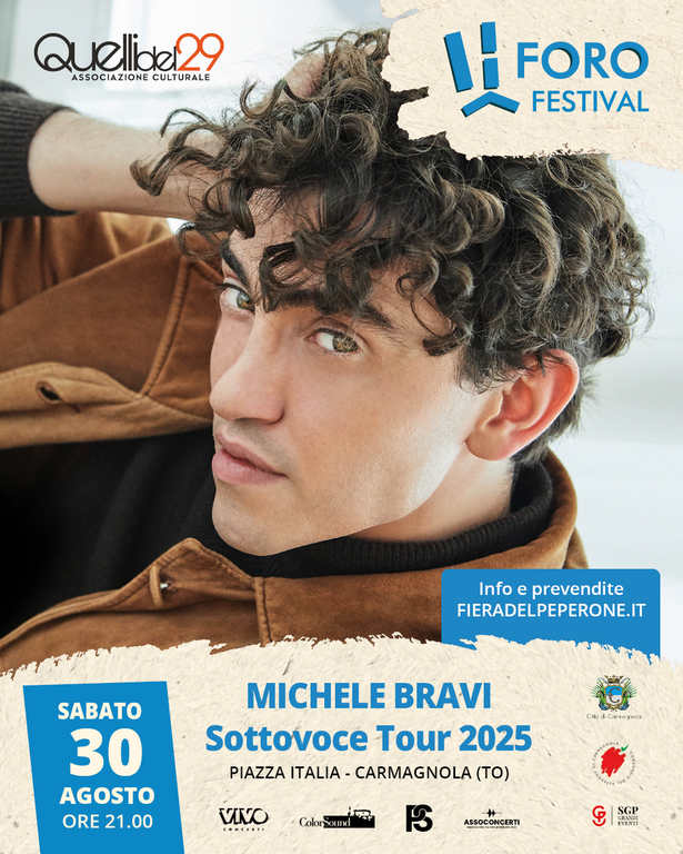 La musica sarà protagonista con un appuntamento da non perdere, sabato 30 agosto, quando sul palco del festival arriverà Michele Bravi, vincitore della settima edizione di X Factor Italia e noto per le sue partecipazioni al Festival di Sanremo. Con la sua voce intensa e il suo stile raffinato, Bravi offrirà un concerto indimenticabile, portando in scena i brani che hanno scalato le classifiche e toccato il cuore di migliaia di fan. Un'occasione unica per cantare a squarciagola testi carichi di poesia e musica piena di emozioni.