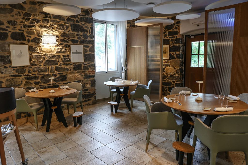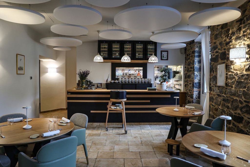 La cucina a vista rivela la brigata al lavoro e riflette la filosofia di Antonio, maturata accanto al pluristellato Mauro Colagreco e oggi tradotta in un pensiero personale: equilibrio tra mare, orto e terra, radici mediterranee e apertura al mondo.