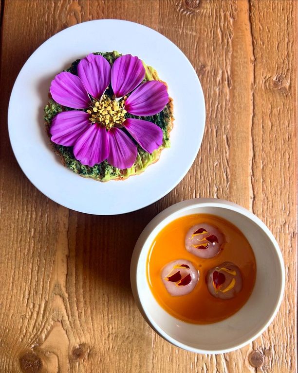 Il servizio del pane è emblema di questa filosofia: pani artigianali serviti con burro di ispirazione nordica e con l’olio extravergine dell’orto di famiglia, simbolo della cultura mediterranea. I piatti preparati sempre con cura con il pescato del giorno e carni di qualità, verdure freschissime e anche i fiori eduli utilizzati per dare sapore e non solo colore.