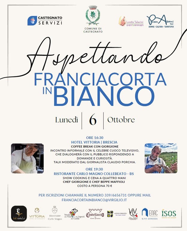 Info e prenotazioni: 339 6656731 – franciacortainbianco@virgilio.it