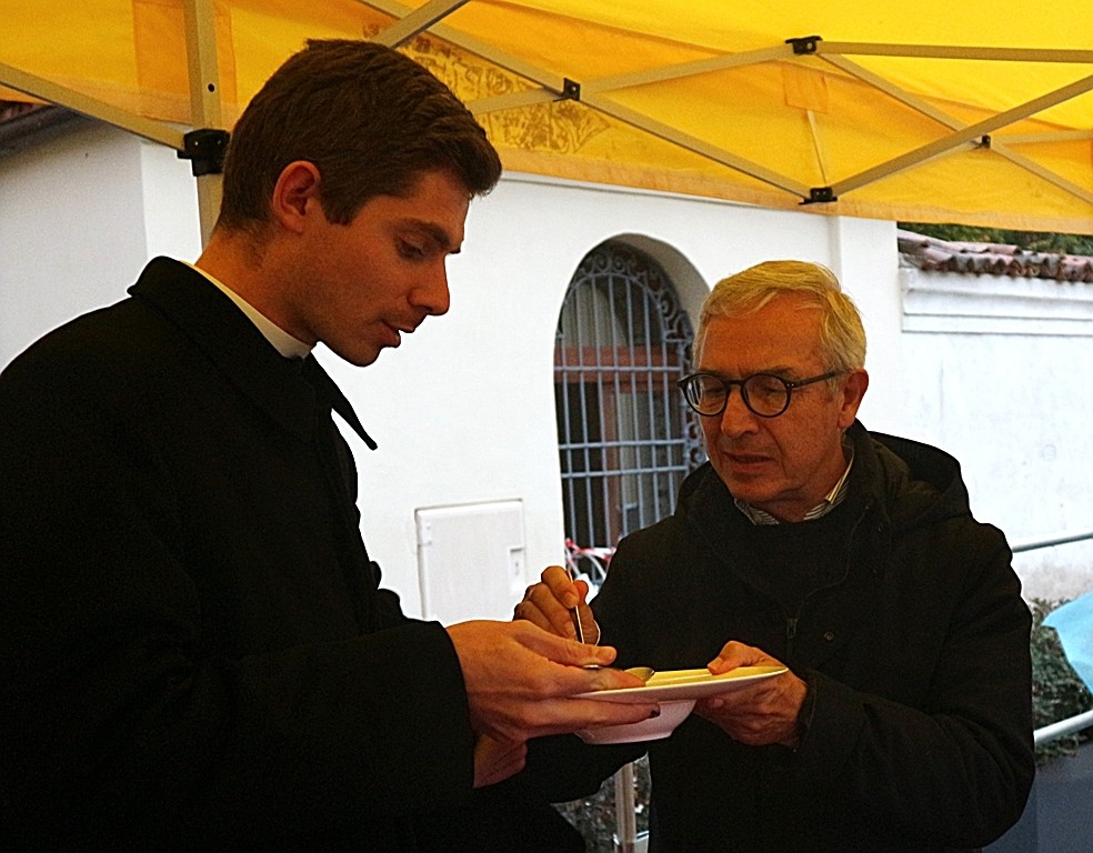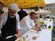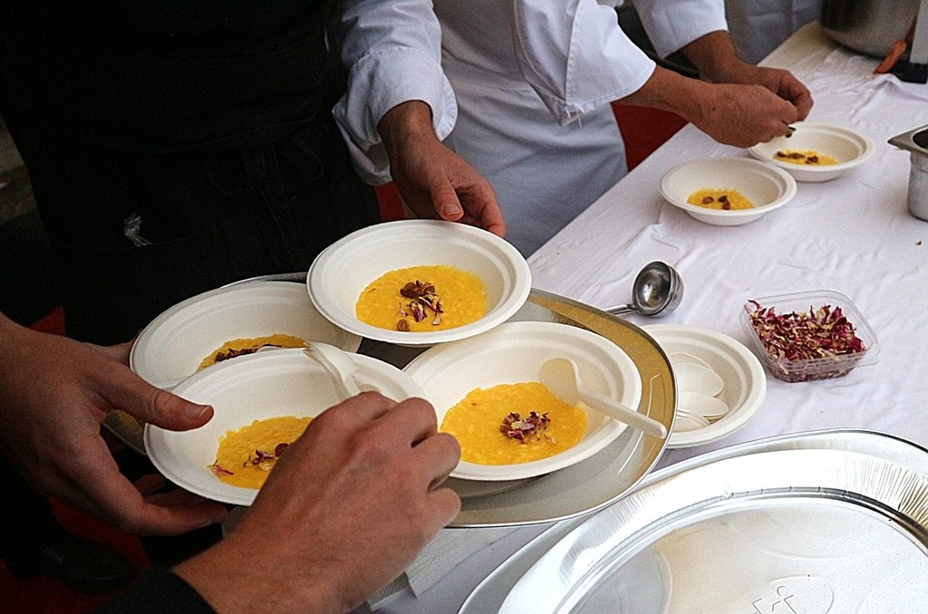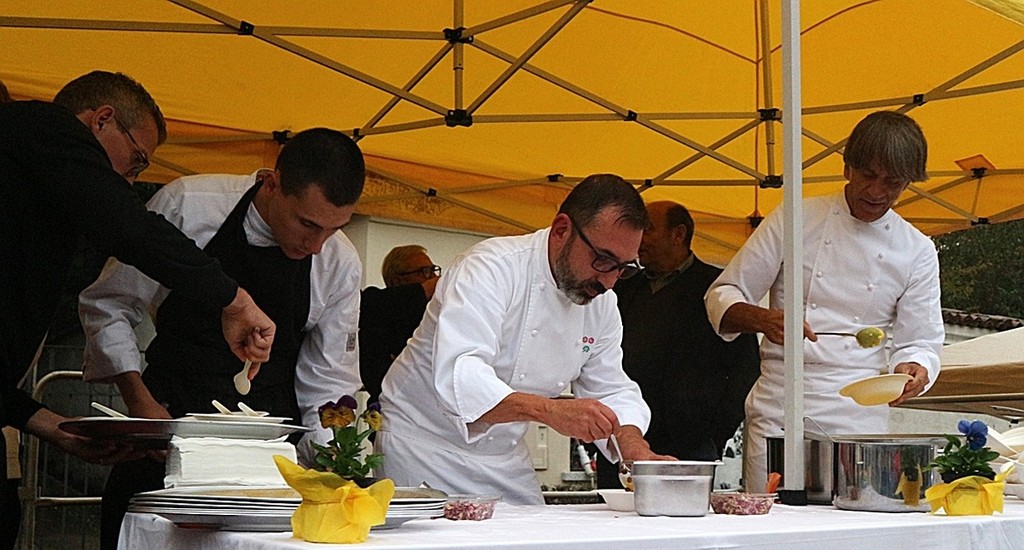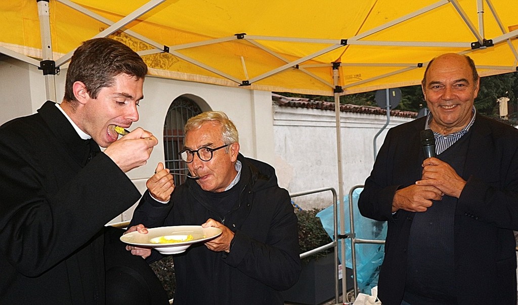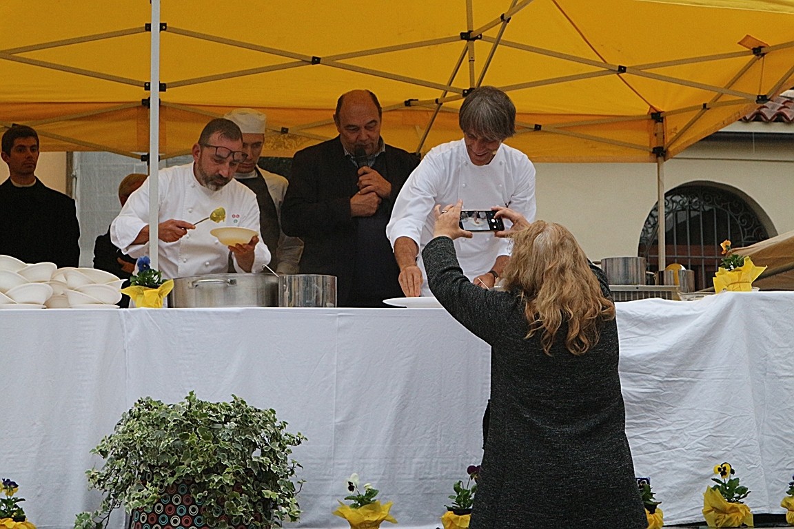 Oldani ha saputo coniugare tecnica e creatività, coinvolgendo anche i giovani studenti dell’Istituto Professionale Olmo che hanno servito con grande professionalità oltre 300 porzioni del risotto preparato dallo chef in diretta. Presenti allo show cooking anche il Sindaco ed il parroco, nei panni di inediti di critici gastronomici.