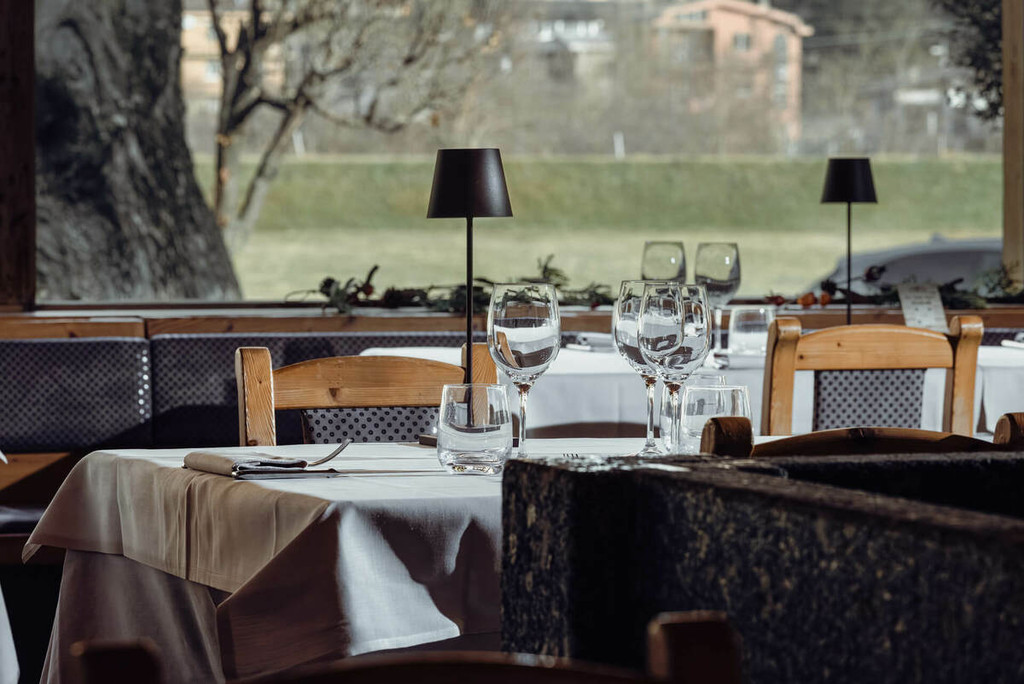 Tarabini costruisce menu che partono dalla materia prima di casa, trasformandola in esperienze gastronomiche che sorprendono senza tradire la memoria. I ravioli di bresaola con cuore fondente di Bitto e salsa al burro d’alpe racchiudono in un boccone l’identità della Valtellina: intensità, tradizione e raffinatezza. Il risotto allo zafferano della fattoria con erbe spontanee è un inno alla delicatezza, mentre il controfiletto di manzo con riduzione di Nebbiolo e verdure dell’orto celebra il matrimonio tra eleganza e rusticità. Ogni piatto è una narrazione, e ogni assaggio è accompagnato da una cantina che valorizza i Nebbiolo di Valtellina accanto a grandi etichette italiane.