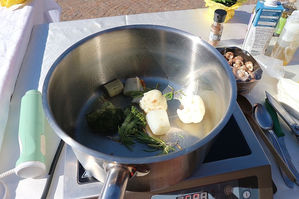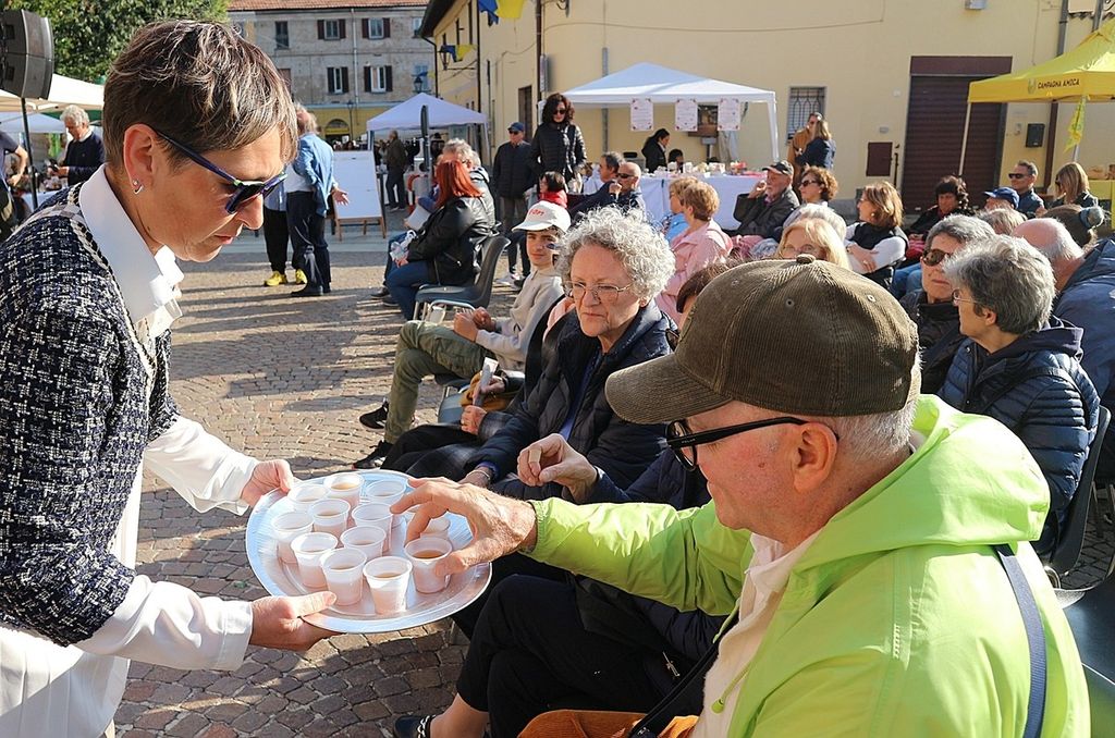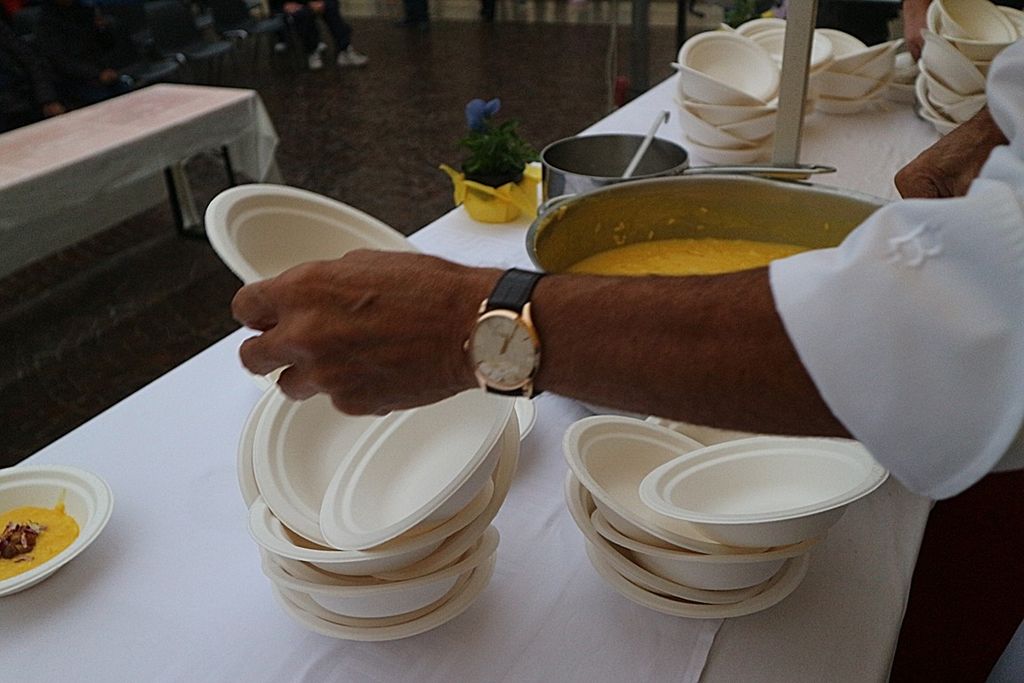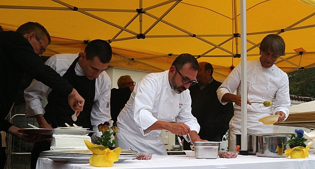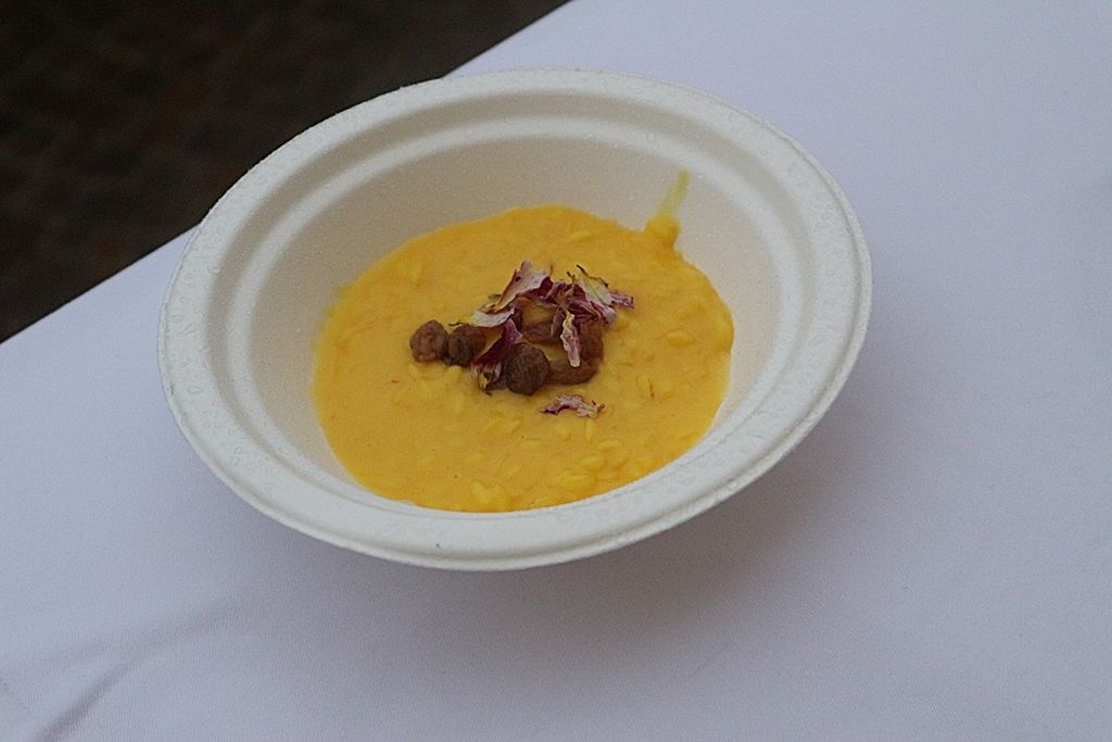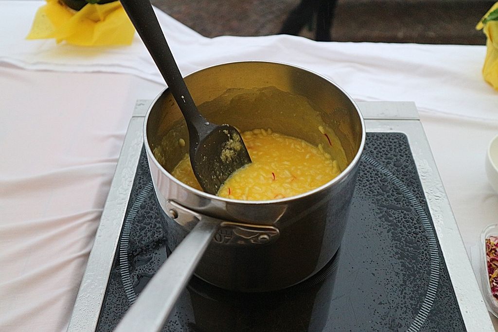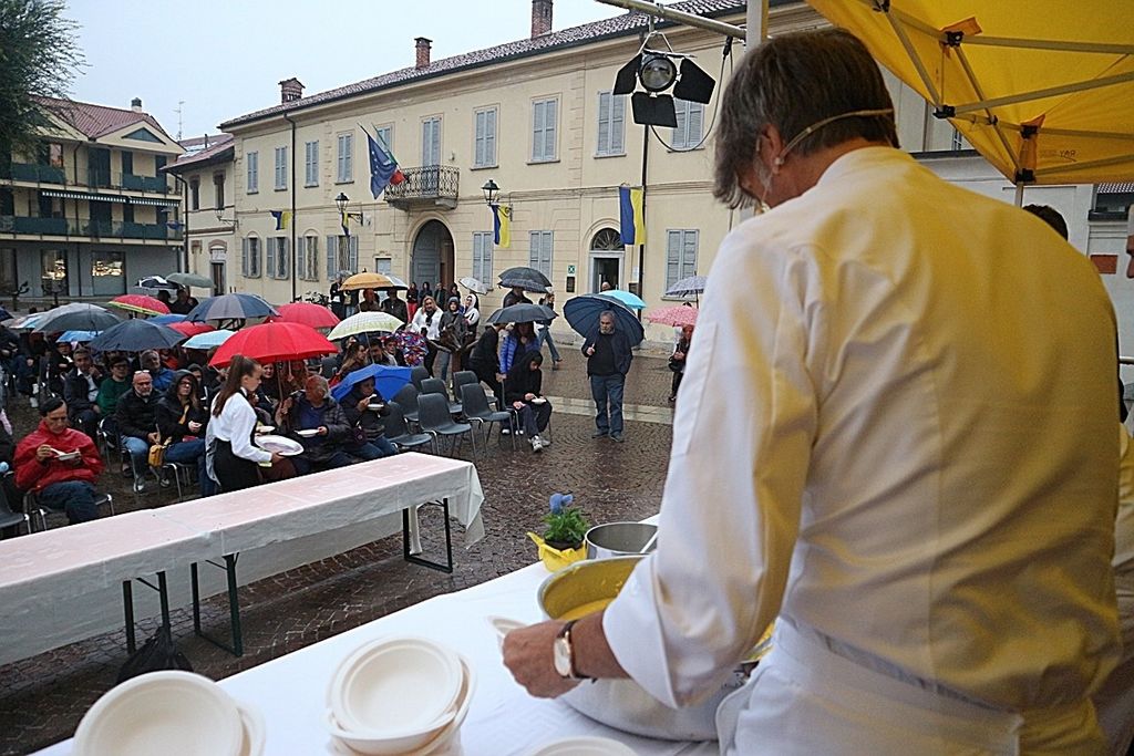 A rendere ancora più speciale l’evento è stata la presenza dello chef stellato Davide Oldani, ambasciatore della cucina italiana contemporanea, che ha saputo fondere tecnica e spontaneità in uno show cooking affollatissimo. Nonostante la pioggia, centinaia di persone hanno assistito alla sua performance, durante la quale, insieme agli studenti dell’Istituto Professionale Olmo, ha preparato e servito oltre 300 porzioni del suo risotto ai fiori, tra sorrisi e applausi.