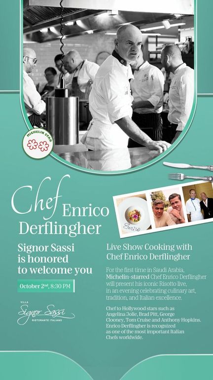 Si è conclusa con un notevole successo la serie di eventi gastronomici che si è tenuta a Riad, con protagonista lo chef Enrico Derflingher, presidente di Eurotoques Italia, in occasione delle iniziative a sostegno della candidatura della cucina italiana a patrimonio immateriale dell’UNESCO.