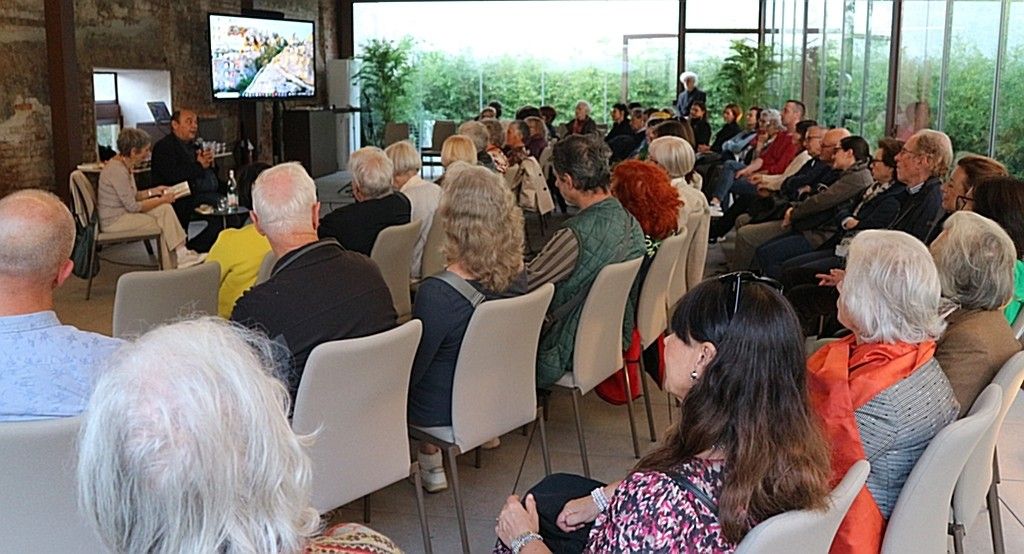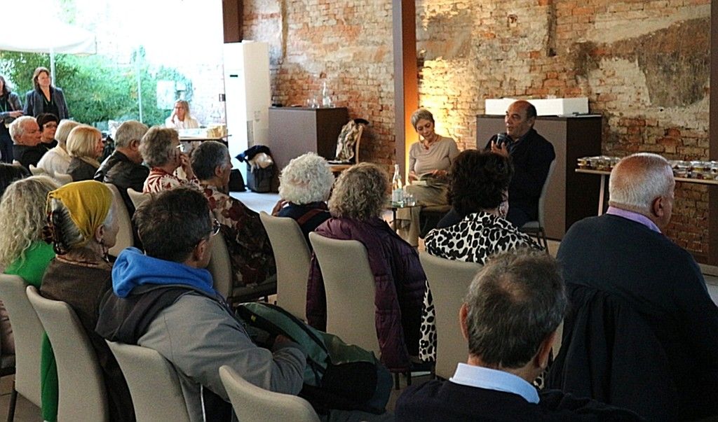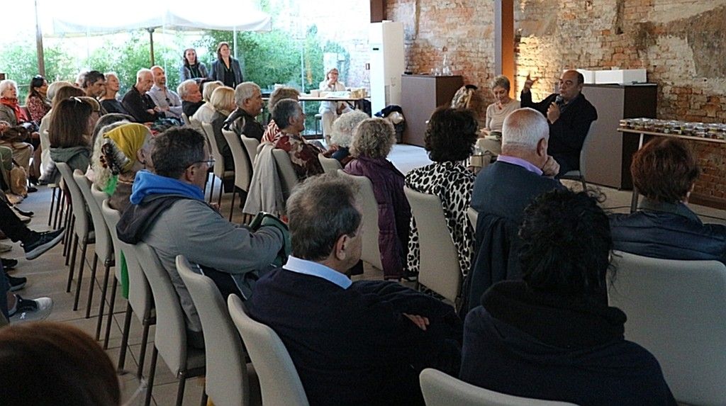 Sotto la Pergola bioclimatica, si è poi tenuto l’incontro con Claudio Porchia, giornalista ligure e ideatore del Festival nazionale della Cucina con i Fiori, affiancato da Mariagrazia Dammicco, presidente del Wigwam Club Venezia. I due hanno presentato il volume Ricette per ogni stagione di Libereso Guglielmi, recentemente pubblicato da Edizioni SemiRurali: un libro che racconta con semplicità e poesia la cucina naturale del “giardiniere di Calvino”, custode di un sapere botanico e gastronomico d’altri tempi.