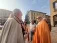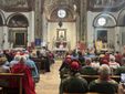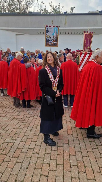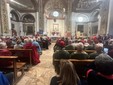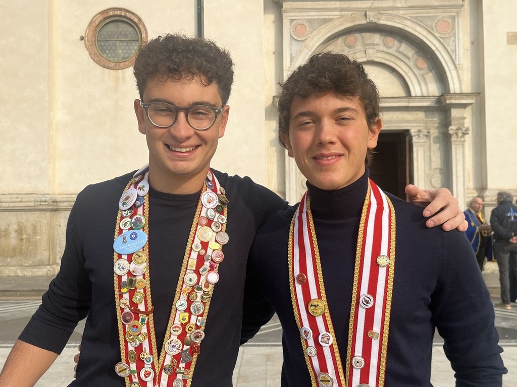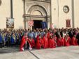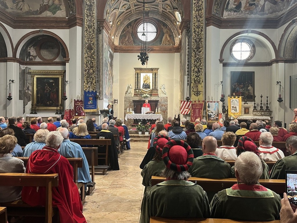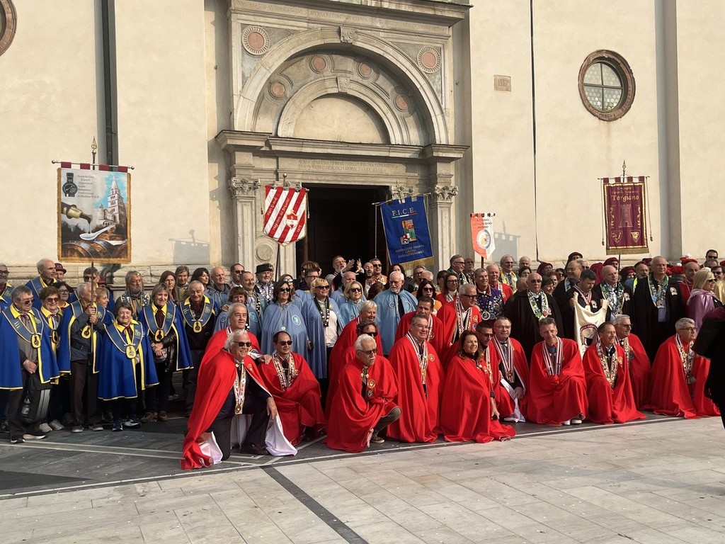 Momento indimenticabile appunto la sfilata in centro raggiungendo quel gioiello che è il santuario di Santa Maria. Foto di gruppo davanti alla chiesa, poi la messa celebrata dal prevosto Severino Pagani. Anche se il santuario è una gioia per gli occhi e per la storia dell'arte, vederlo ulteriormente colorato dai mantelli dei partecipanti si è rivelato alquanto emozionante. Non facile contenere tutti i 280 ospiti, alcuni sono rimasti ad esplorare la città. Anche a godersi un caffè nei bar della piazza o a scoprire la cantina settecentesca della pasticceria Oscar.