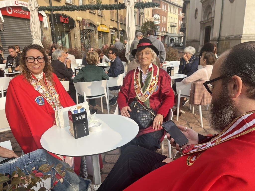 Filippo Brazzelli e Ludovico Toia non hanno ancora il mantello, ma indossano già i primi segni della Confraternita e sono subito intercettati da alcuni bustocchi incuriositi dall'insolito spettacolo domenicale: «Ma che succede, cosa sono tutte queste persone che sfilano? E voi chi rappresentate?». Già sul pezzo, i due giovani spiegano subito che appartengono al Magistero dei Bruscitti di Busto Arsizio e tutti i personaggi che stanno attraversando il centro della città appartengono alle confraternite di tutt'Italia, radunate ufficialmente qui.