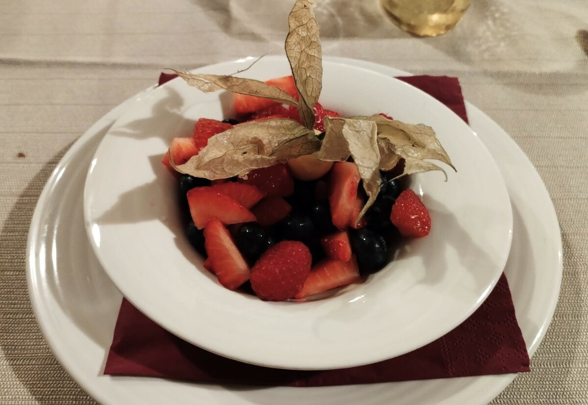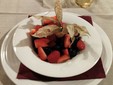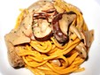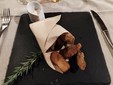Si prosegue con i tagliolini di semola di grano duro con porcini freschi e castagne, un piatto che profuma di legna e di nebbia mattutina. Qui la delicatezza della pasta incontra la rotondità delle castagne e la fragranza dei funghi, dando vita a una sinfonia di sapori che avvolge e conforta. Ogni forchettata è un piccolo omaggio al bosco e alla sua generosità.