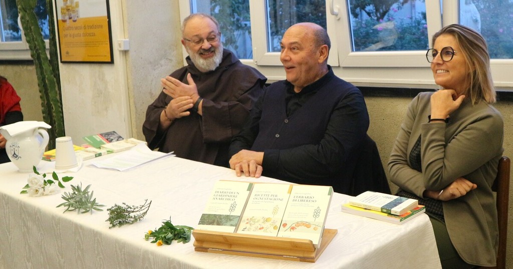 Nell’incantevole cornice dell’Antico Loggiato della Farmacia Sant’Anna dei Frati Carmelitani, di fronte a un pubblico numeroso e partecipe, si è svolta la presentazione del libro “Ricette per ogni stagione” (ed. Semi Rurali). Un incontro speciale dedicato a Libereso Guglielmi, il celebre “giardiniere filosofo”, che ha regalato ai presenti un viaggio tra memoria, natura e poesia.