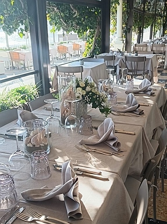 Qui, varcata la soglia, non si entra in un semplice ristorante d’albergo: si entra in una piccola oasi sul mare. Uno di quei luoghi che conquistano già prima di sedersi, grazie a una terrazza naturale affacciata direttamente sulla spiaggia, dove la sabbia sembra fondersi con il pavimento e il profumo del pesce fresco si intreccia con la brezza marina. Mangiare con les pieds dans l’eau non è un vezzo, ma un’esperienza che qui unisce semplicità, eleganza e un’atmosfera davvero unica.
