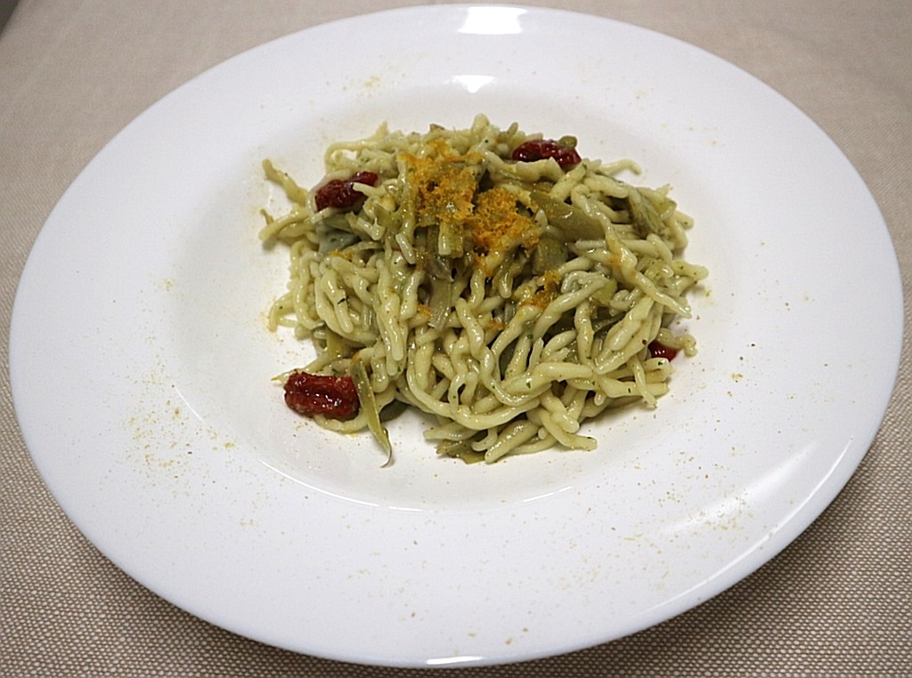 Fra i Primi piatti: un ricco e avvolgente Gnocchi di patate con zucca al timo e salsiccia Luganega; un elegante e complesso Trofie con carciofi, bottarga di tonno e polvere di limone; un classico preparato con grande cura come lo Spaghettone Rummo alle vongole veraci indicato fra le specialità dello chef e un comfort ligure allo stato puro come le Lasagne gratinate al pesto