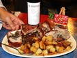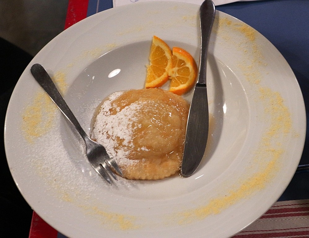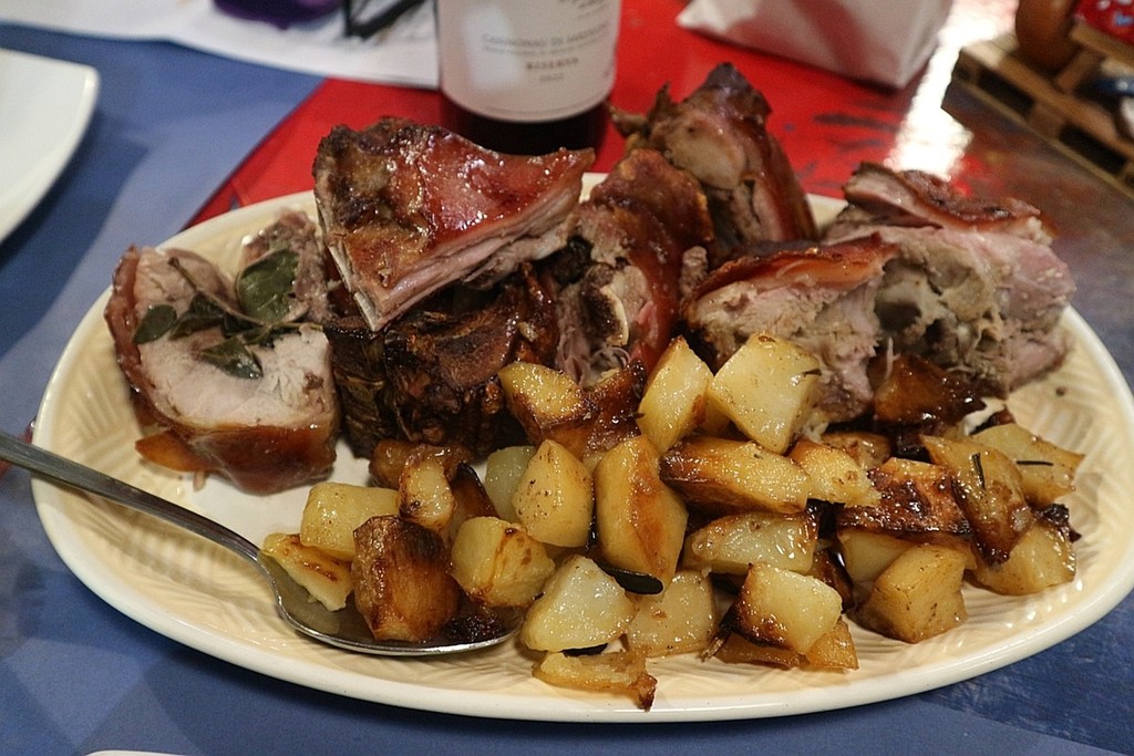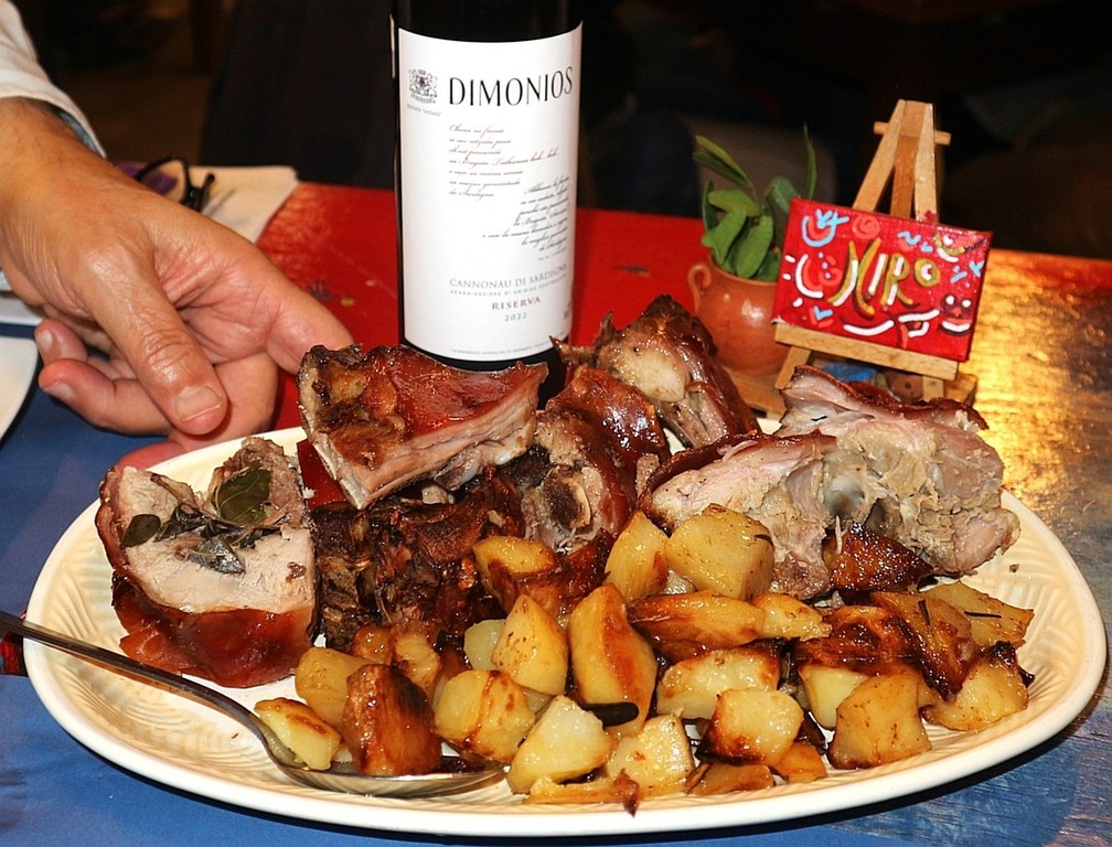 Il percorso è continuato con il grande protagonista dei banchetti tradizionali: il Maialino al forno con patate. La carne, cotta lentamente, risulta morbida e succosa, mentre la pelle diventa croccante e dorata. Le erbe della macchia mediterranea e le patate insaporite nel fondo evocano immediatamente i paesaggi interni della Sardegna e le celebrazioni comunitarie. Un piatto che porta a tavola non solo gusto, ma un intero modo di vivere, fatto di convivialità, rispetto della tradizione e amore per le cose fatte bene.