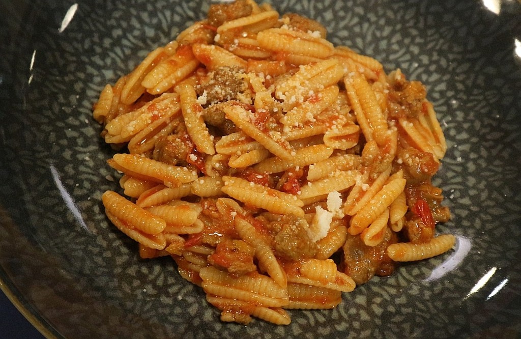 Si è poi proseguito con uno dei simboli della gastronomia isolana: i Malloreddus, la pasta tipica del Campidano, realizzata con semola e acqua e modellata a mano con la caratteristica rigatura. Serviti nella loro versione più celebre, i Malloreddus alla Campidanese, con salsiccia sarda, pomodoro e zafferano, hanno portato in tavola profumi di feste di paese, convivialità e terra assolata. Questo piatto non è semplicemente una ricetta: è un manifesto culturale che parla di campi assolati, famiglie riunite e pranzi domenicali che profumano tutta la casa.
