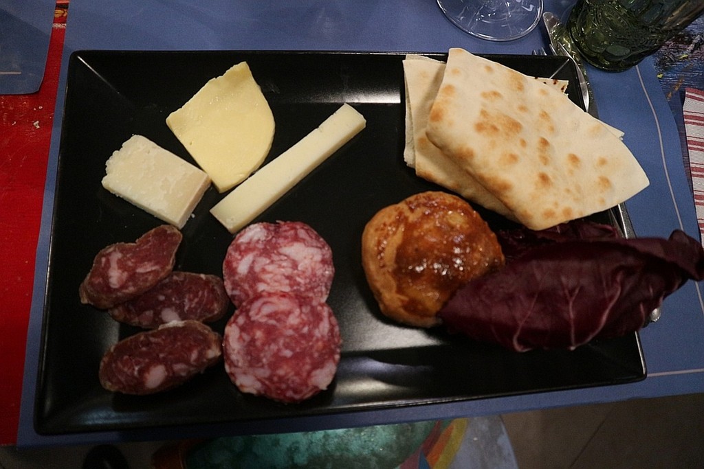 La cena si è aperta con le Impanadas, piccoli scrigni di pasta un tempo preparati nei giorni di festa. Al loro interno custodiscono una gustosa farcia di salsiccia, abbinata a salumi e formaggi sardi: un antipasto fragrante e ricco, profondamente legato alla terra e alla cultura pastorale dell’isola. Testimoni di una cucina che sa essere povera e generosa, semplice e sapientissima allo stesso tempo.