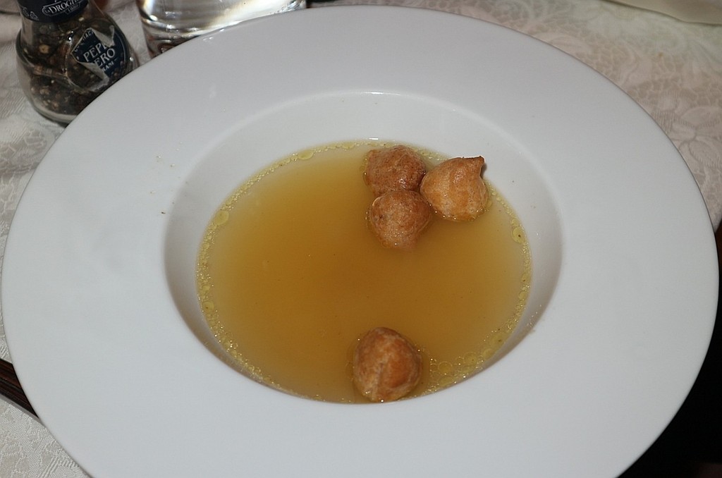 Il menù ha offerto anche un tuffo nella memoria gastronomica con la Pasta Reale in brodo, piatto caldo e rassicurante dalle radici storiche, particolarmente adatto al periodo autunnale.