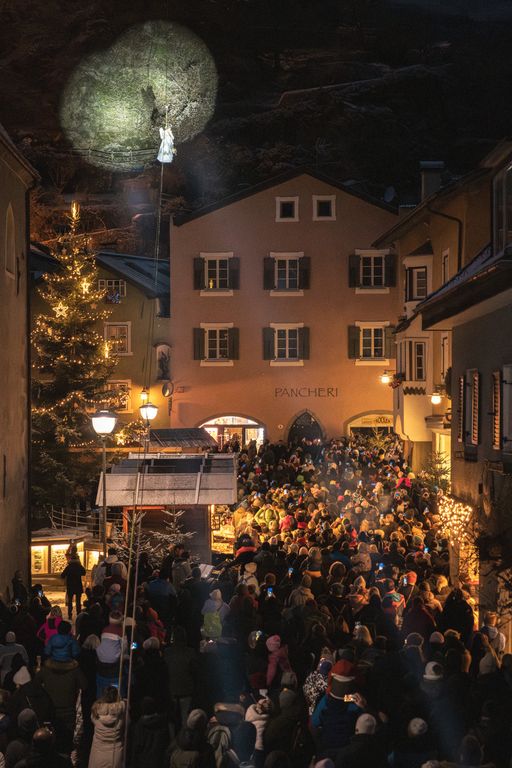 Dal 28 novembre al 23 dicembre 2025, ogni venerdì, sabato e domenica oltre all’8/12, 22/12 e 23/12, il Borgo Natalizio di Chiusa si trasforma in un piccolo gioiello fiabesco. Abeti verdi e decorazioni naturali adornano le facciate delle case storiche, illuminate da lanterne che creano un'atmosfera magica. Le bancarelle si snodano lungo i vicoli tortuosi, estendendosi fino alle antiche cantine, dove si nascondono autentici tesori: ciotole in legno intagliato, presepi finemente lavorati, pantofole in feltro e prodotti artigianali realizzati con le erbe aromatiche dei masi contadini. L'aria si riempie del profumo dolce e speziato delle delizie natalizie, invitando a riscaldarsi con una tazza di vin brûlé. L'Avvento a Chiusa è un'esperienza multisensoriale che eleva la meraviglia delle feste a un livello superiore. Dalla storica Torre del Capitano, un "angelo natalizio" scende in volo, portando con sé non solo auguri, ma anche dolci sorprese per i visitatori.