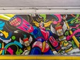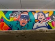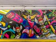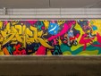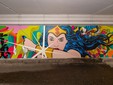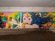La fresque, caratterizzata da colori accesi, forme dinamiche e motivi organici, attinge al pop art, al street art contemporaneo e alle estetiche psichedeliche anni ’70 e ’80.