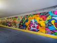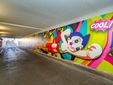 L’ultima iniziativa della municipalità riguarda il tunnel della Ferrage, uno dei passaggi più trafficati del centro, oggi trasformato in un percorso visivo grazie a una monumentale fresque in stile pop e street art.