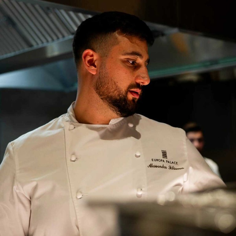 ALESSANDRO SCHIAVON, originario di Imperia, si è formato giovanissimo nella trattoria di famiglia prima di approdare a Milano, dove entra nella brigata del celebre Ristorante Bice sotto la guida dello chef Enzo Mazzone. Dopo aver guidato il nuovo locale in Corso Como come Executive Chef, decide di tornare nella sua città per reinterpretare la cucina ligure in chiave moderna presso il Ristorante Cuxen. Oggi è Executive Chef all’Europa Palace, dove firma con