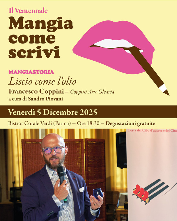 Le celebrazioni per i vent’anni della rassegna continueranno per tutto il 2026. Dal 2006 al 2020 “Mangia come scrivi” ha portato a tavola 500 scrittori, 170 artisti e oltre 10mila commensali in 175 cene-spettacolo, dando origine anche al Festival Mangiacinema e alla rassegna Mangiamusica.