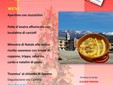 Ecco il menù: si comincia con un aperitivo con stuzzichini, un momento informale e festoso che apre l’atmosfera e invita alla condivisione.