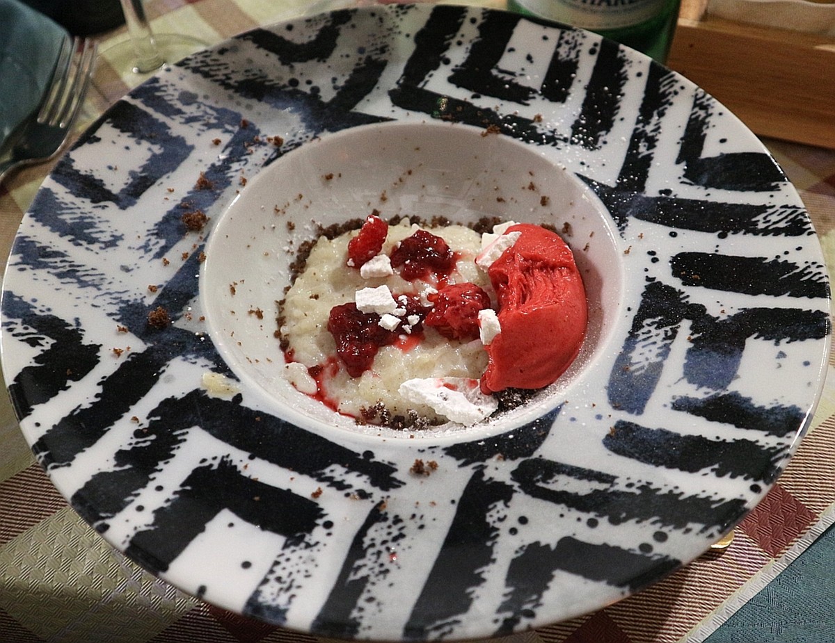 Il finale è una carezza: Riso, latte e gelato ai lamponi e l’intramontabile Torta di riso. Due dolci delicati e rassicuranti che celebrano il riso nella sua forma più semplice e autentica, riportandolo alle sue origini.