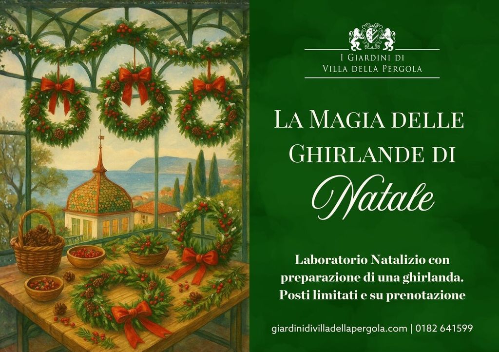Avete pensato alla creazione di una vostra ghirlanda per Natale? Un simbolo iconico del periodo festivo, la ghirlanda racchiude significati antichi legati alla speranza, al rinnovamento e al ciclo eterno della vita, grazie ai suoi elementi naturali come sempreverdi e bacche. E quale luogo migliore per realizzarla se non i Giardini di Villa della Pergola? Per tre weekend consecutivi i Giardini di Villa della Pergola vi aspettano con un laboratorio natalizio unico. Dopo una breve introduzione all’atmosfera delle feste e alle tradizioni legate a questa decorazione senza tempo, i partecipanti saranno guidati passo dopo passo nella creazione della propria ghirlanda, partendo dalla struttura di base fino alla composizione finale. Il laboratorio si svolgerà nella suggestiva Serra dei Giardinieri e utilizzerà materiali naturali raccolti nel Parco – rami di cipresso, pigne ed elementi selezionati e dipinti a mano dai giardinieri – pronti per trasformarsi in una ghirlanda personalizzata.