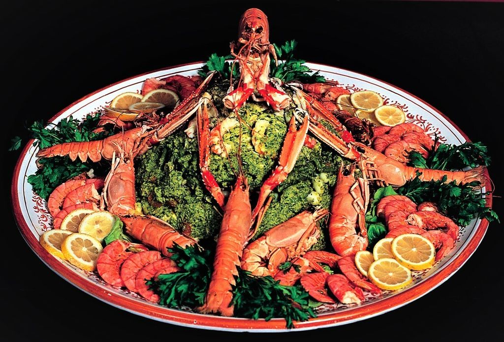 aragoste, pesci pregiati come orata o spigola, frutti di mare, gamberi e scampi si intrecciano con ortaggi tipici della Liguria – cavolfiori, carciofi, fagiolini, scorzonera – creando un mosaico di colori e sapori.