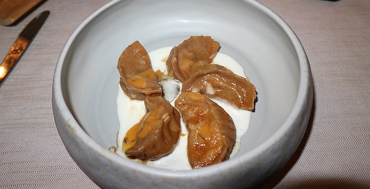 Una gustosa nota di contaminazione contemporanea. Il merluzzo, pesce viaggiatore per eccellenza, parte dall’Atlantico, attraversa la Liguria e arriva in Asia, senza perdere identità.