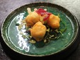 Una preparazione che gioca sul contrasto tra consistenze e sapori. Il baccalà, croccante all’esterno e morbido all’interno, incontra l’agrodolce mediterraneo in un equilibrio elegante e misurato, capace di valorizzare la struttura del pesce.