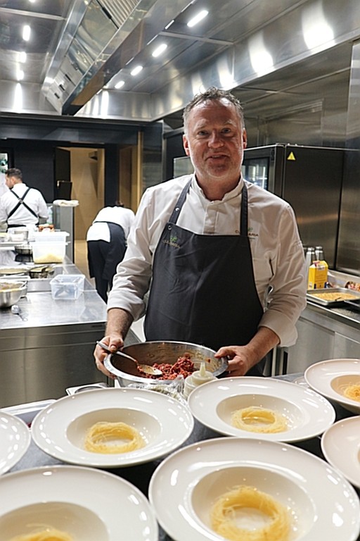 Fondamentale il lavoro corale: gli chef e la brigata di cucina hanno collaborato con entusiasmo, precisione e autentica passione, offrendo un risultato eccellente, in linea con ciò che ci si attende da una struttura cinque stelle. La cucina a vista ha permesso agli ospiti di cogliere non solo la cura tecnica, ma anche l’armonia dell’intero team.
