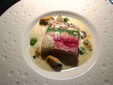 Nei primi piatti, lo chef Alessandro Schiavon ha riletto la tradizione con sensibilità contemporanea. I Ravioli d’astice con burro allo zafferano, mostarda di zucca e polvere di liquirizia, seguiti dal Risotto all’aglio nero fermentato, ragù di lumache, battuto di erbe fresche e limone, hanno intrecciato mare e terra con equilibrio, trovando un contrappunto raffinato nel Pigato Riserva “Via Maestra” – La Ginestraia, espressione autentica del Ponente ligure.